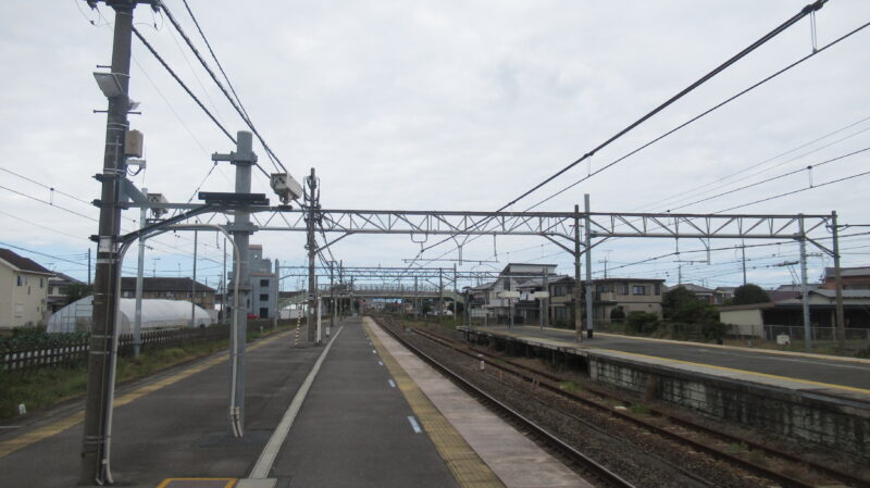 2面4線と結構な設備、だがのどかな風景だ。 ここから電車に乗るとそのまま東京に行けるのが何となくすごい事のように思う