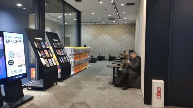 奥の方に座れるスペースがある。 ここ、クチコミでよく書かれているがカーペットにシミが多数。 気にする人は許せないレベルかも知れぬが個人的にはまったく気にならないので入場時間までここで休憩。
