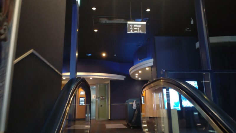 入場してすぐ、IMAXシアターはエスカレーターで上へ。