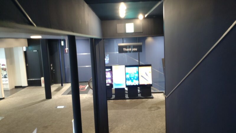 エスカレーターで降りてくると「THANK YOU」の心憎い演出。 映画館としては9スクリーン1230席と小ぶり。 開館は1999年4月らしいが・・ えぇ!! 熊谷より古いのか・・ふじみ野の大井と半年しか変わらない。 どこかのタイミングで改修してると思うがまったく古さを感じさせない。