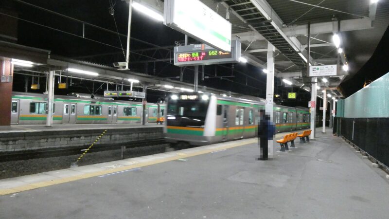 5:52小田原行き上野東京ライン。 10両のまま小田原まで運行、籠原増結はないが3分ほど停車する。 この列車で上野まで移動。
