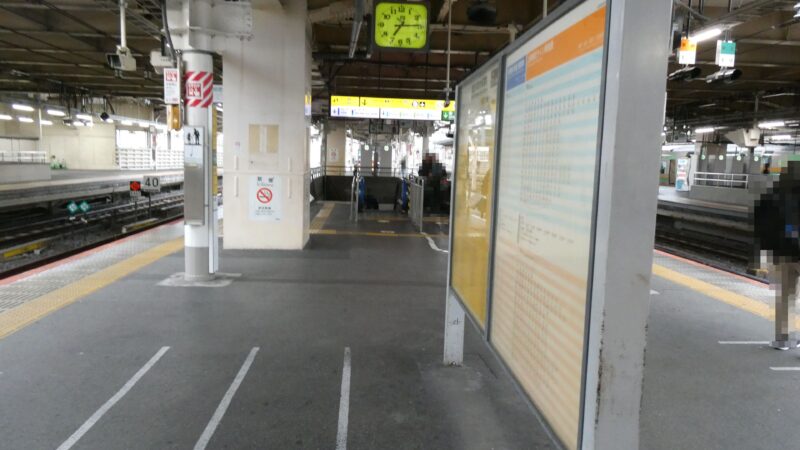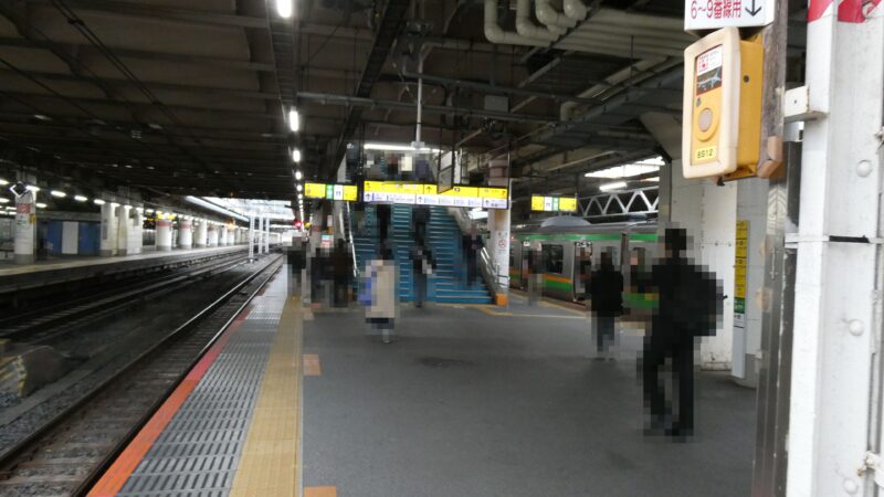 1時間20分後、上野駅に到着。 10両なのでそこそこお客さんがいたがさほど混雑もせずに到着。 次は地下鉄に乗るので写真の階段は上がらずに直進して下階へ降りる階段を目指す。
