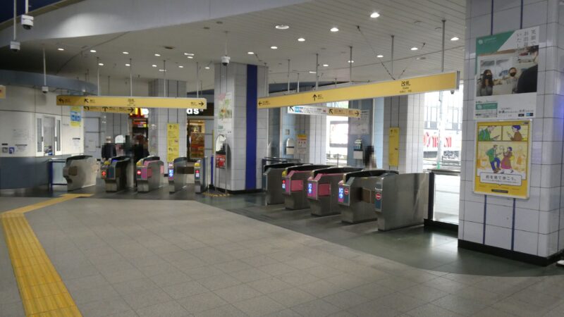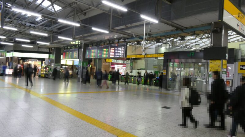 改札は一カ所。 右を外に出るのが南口。 左のマクドナルドの脇を通って行くと東口になるがどちらでも良い。 ただ北口に出てしまうとちょっと遠くなりそう。 右手の南口から外に出てみる。