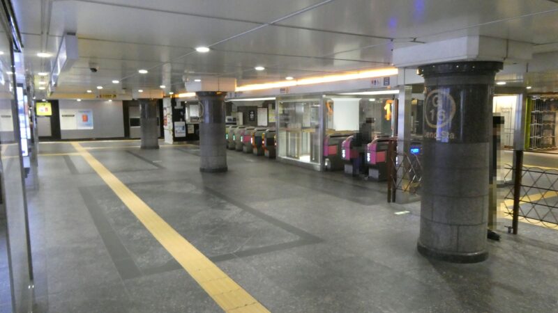 エスカレーターを降りて銀座線改札。 たまたまガラガラになったタイミングみたい。
