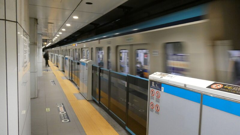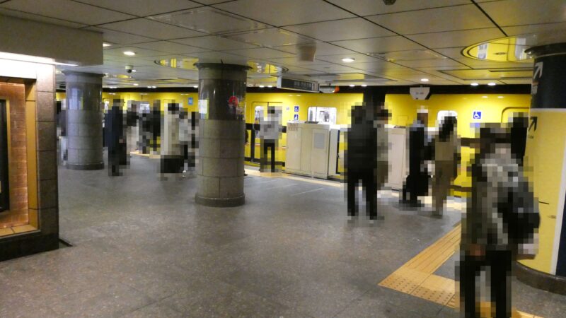 さらに階段を降りてホームに出るとちょうど渋谷行き列車が到着。 これで日本橋まで移動。