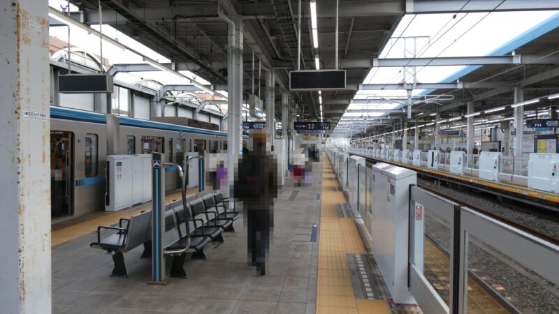 地下深い東西線ホームに降りてくるとまた東葉高速鉄道直通の東葉勝田台行き列車が入線。 ギリギリの乗り換えが二つ続くと予定より少し早くイオンに到着できるかも知れない。