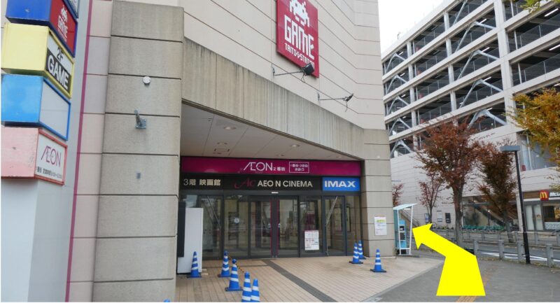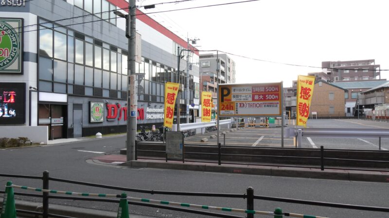 目の前はパチンコ屋さん。 ここの左に向くとイオンがあるはず。
