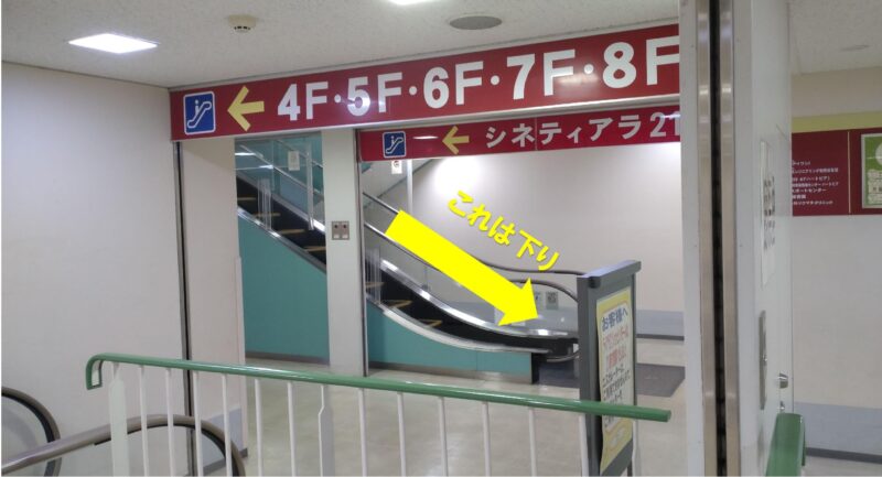 シネティアラ、エレベーターにのって7Fからエスカレーターに乗れ。 いやどうせ最後にエスカレーターに乗るならこの階からエスカレーターに乗って行こう。