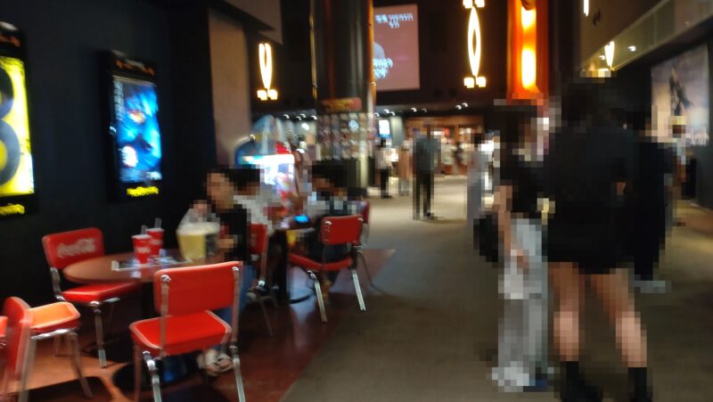 ロビーに到着。 広いロビーではないが天井が高くて開放的。 自動券売機も数台設置してある。 ショッピングモール内の映画館はここより狭いところ、たくさんあると思う。