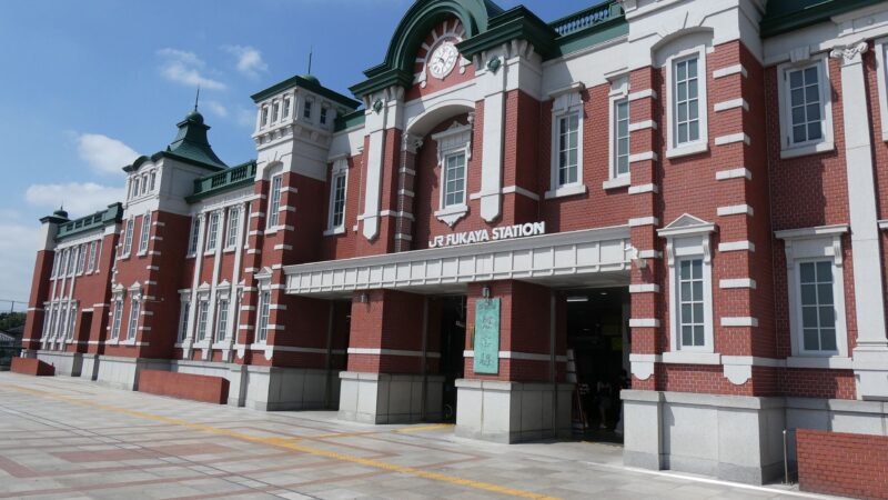 もう10時過ぎ、充分に陽が高くなっている深谷駅。 暑い。