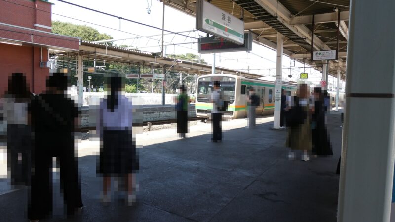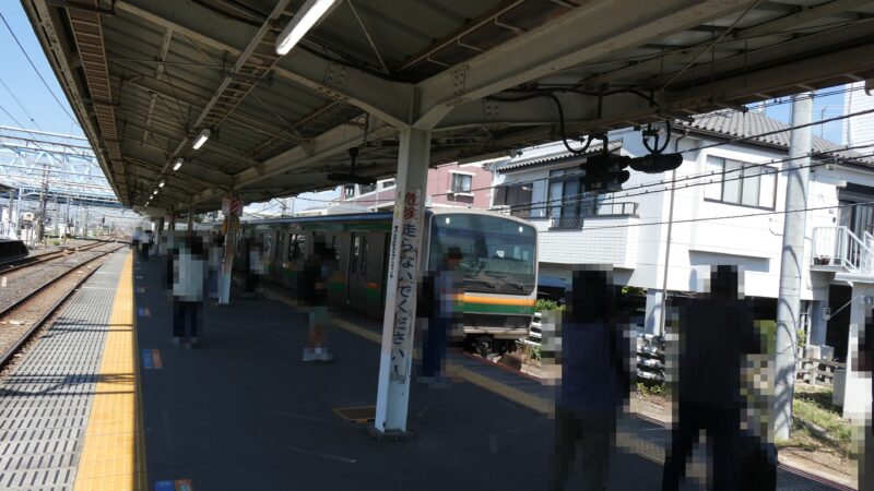 ホームの日陰で10分ほど待ったろうか、上野東京ライン小田原行き列車が到着する。 次の籠原で増結する車両に乗り換えるので適当な車両に乗り込んで1駅だけ立って移動。