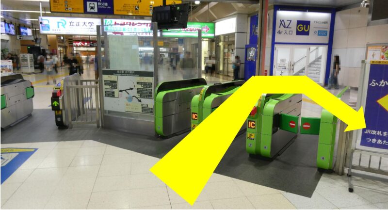 1カ所しかない在来線の改札を出たら右へUターン。 アズの入口はたくさんあるが先ほど確認した一番奥の入口へ向かう。