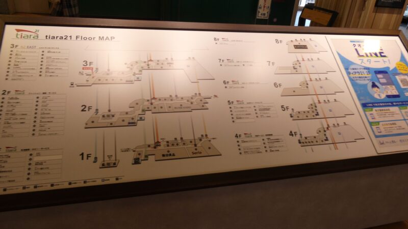 アズ本館は左、ティアラ21は右の案内。 下にはティアラのフロアマップ。