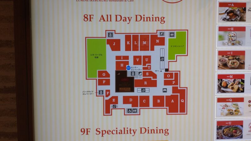 8Fでエレベーターを降りると目の前にフロアマップ。 左へ向かえば映画館があるはず。