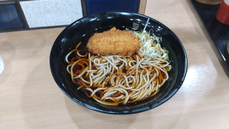 で、西口からだとかなり遠いがいつもの駅そば。 何となくコロッケが食べたくて普段買わないコロッケそば。 これが460円(2025年10月現在)と安い。 いつも食べてるカレーライスより安いではないか。