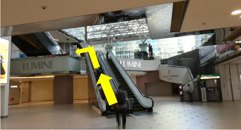 あとはセンターエレベーターを目指すのみ、この日はまだルミネ営業時間前なのでセンターエレベーターからしか入れない。