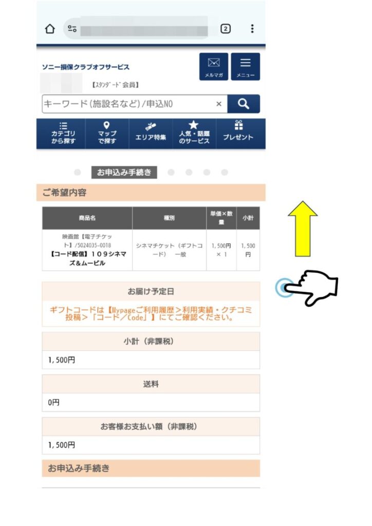 「お申込み手続きへ進む」をタップ。
