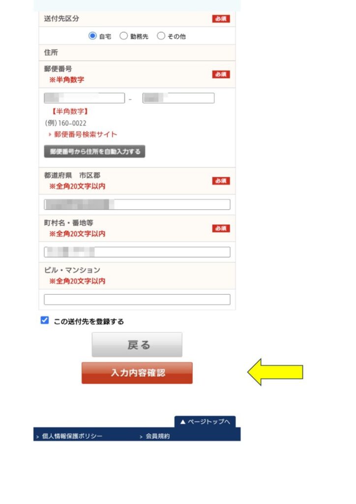 入力したら「入力内容確認」。