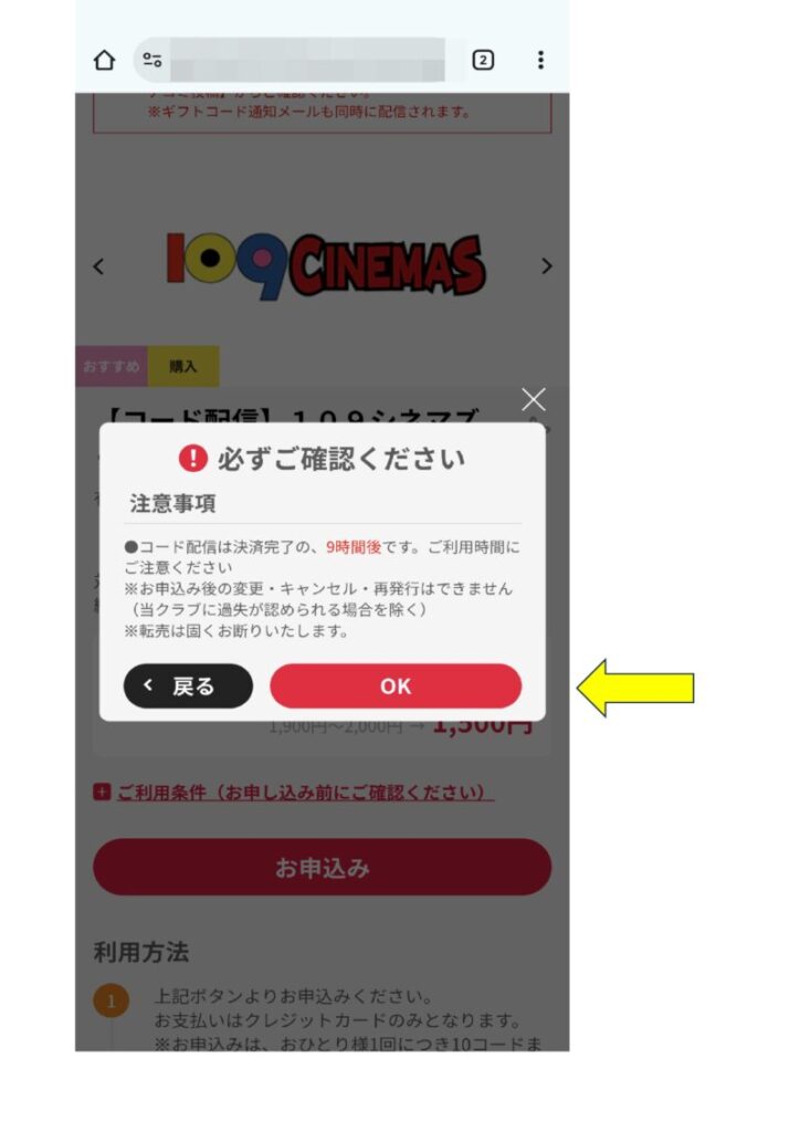 申し込みの画面。 良ければ「申し込み」をタップ。