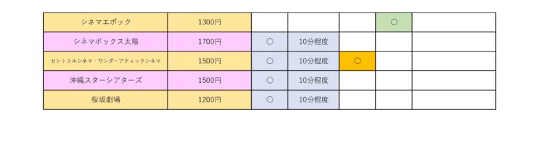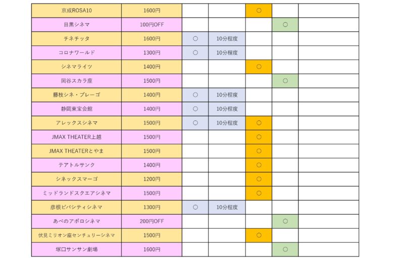 まず割引の表を作ってみた。 以下の通りで金額は大人料金、内容は2026年1月現在。