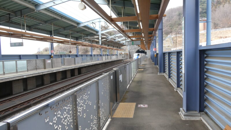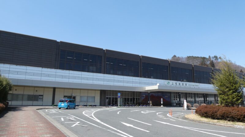 ヘロヘロになりながら何とか到着。 ここが上越新幹線の上毛高原駅、時間は10分ほど余裕がある。 当然だが歩いてこの駅に来ている人はいない。 バスが何台かいるが水上(平仮名のみなかみ町ではなく水上温泉郷の事)から来ているようだ。 さっき水上駅で降りた時にバスに乗れば来られたらしい。 そうすればここから後閑駅まで下りで向かえたのか。 後閑で上越線にどのくらいの待ち時間で乗れたのが調べたくなるが、やめておこう。