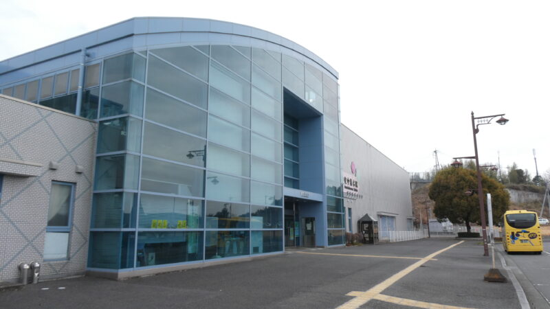 右に見える黄色いバスに乗ってきた。 エキタグをゲットして次の上り列車まで1時間以上。 駅構内の駅そば(おぎのやさんかも)が営業していたのでそばを食べて、あとはホームの待合室で延々と待っていた。