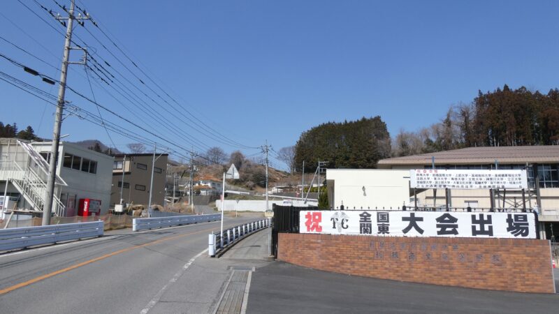 途中で右折していよいよ本格的な上り区間。 ここは利根沼田学校組合立利根商業高校。 全国的にも珍しい組合立の学校で、数年前までここの卒業生と同じ会社で働いていた。