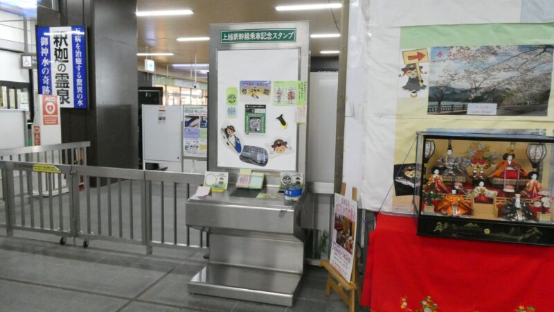 なぜここで降りたかと言うと、この駅にスタンプが設置してあったのと、新幹線駅の上毛高原駅へ行くため(徒歩で)。 バスも出ているのだが1日4本くらいで朝と夕方のみでこの時間はまったくない。