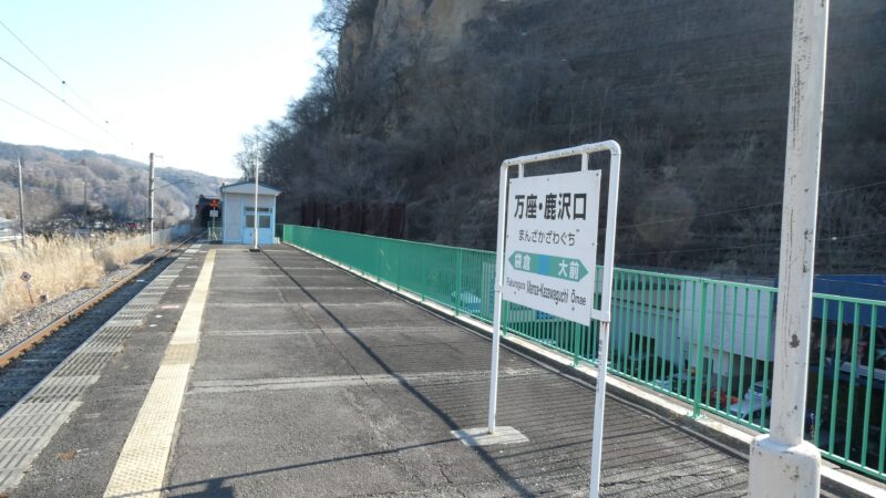 到着。 ここ正確には万座・鹿沢口と中央に「・」が入る珍しい駅。 この次の大前駅が吾妻線の終点で、大前まで行かずにここで折り返す電車が多数らしい。 しかしこの時は大前折り返しの電車だったので40分くらい時間がある。