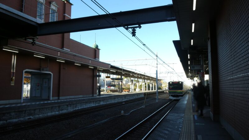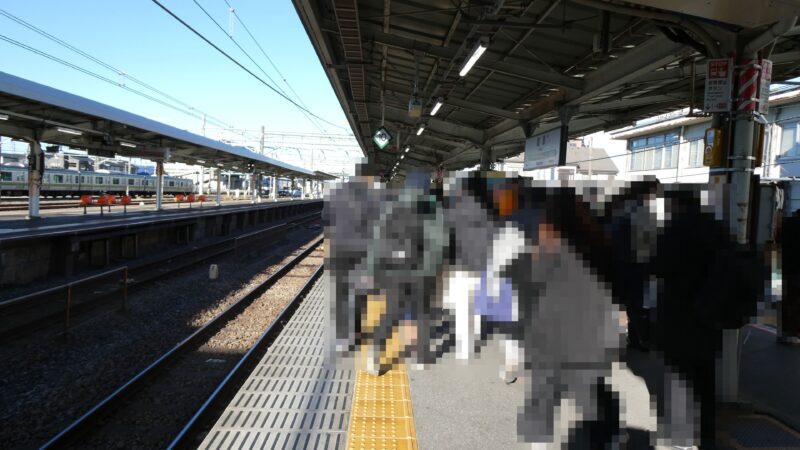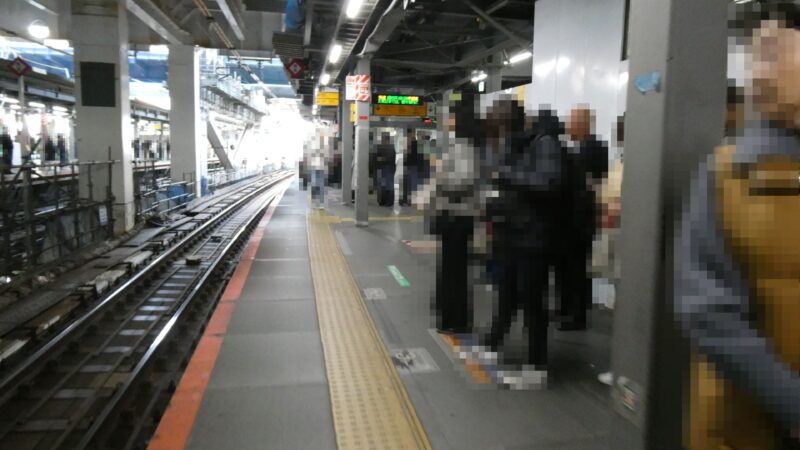 ・・・トイレ、めちゃくちゃ混んでて時間を使ってしまった。 南端の新南改札から北端のハチ公改札まで250m近くあるので急がないと。 ホーム一番北、新宿方の階段を降りる。