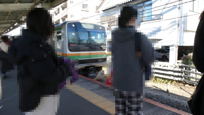 8:41湘南新宿ライン国府津行き。 良い時間に湘南新宿ラインがあったのでこれで行く。 この駅まで10両なので空席は少ないが次の籠原で増結車両に乗り換える。