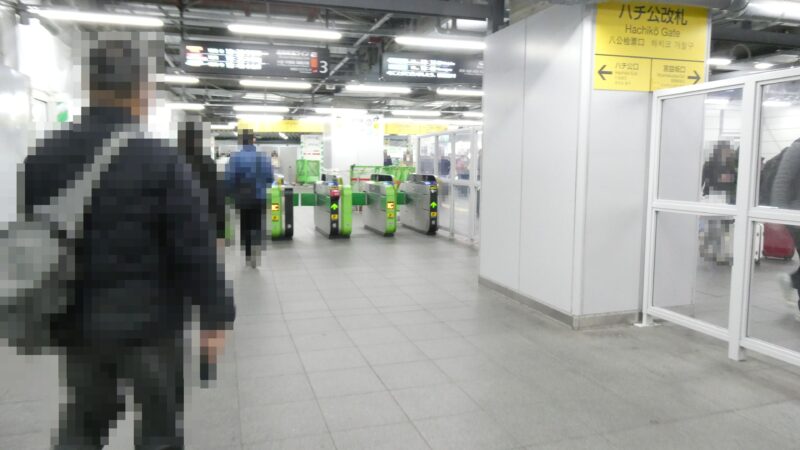 迷ったらパニックになりそうな地下を無事に抜けてA8出口、ハチ公出口前。 来た時、改札に違和感を感じたがどうやらだいぶ位置が変わっていたようで、しかも2方向にあった改札がひとつになっていた。