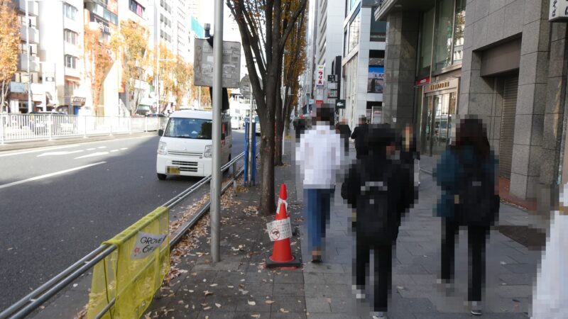 反対側の方が人が少なそうなので信号をふたつ渡って向こうから行こう。 けっこう時間がキツくなっている。