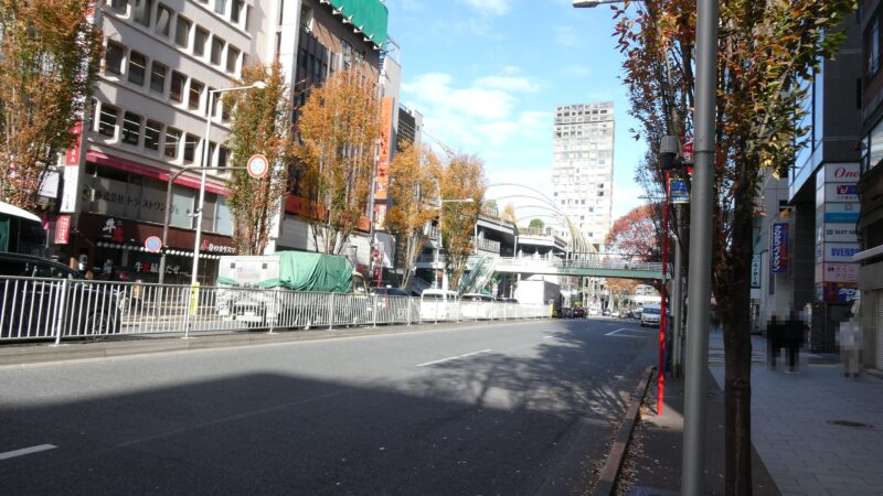 道路左に見えるアーチが宮下公園というやつか。 もっと暖かい季節なら行ってみたいが今年は急に冬になったので散策するところにはなかなか行けないな。