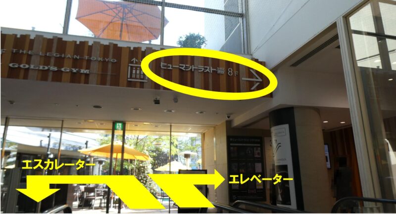 広い入口が見えた。 このエスカレーターに乗って3Fへ上がり、あとはエレベーターで上がるらしい。
