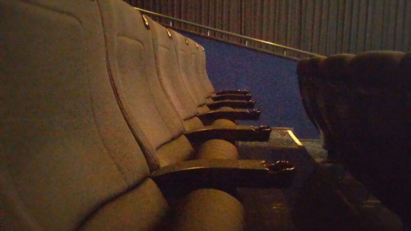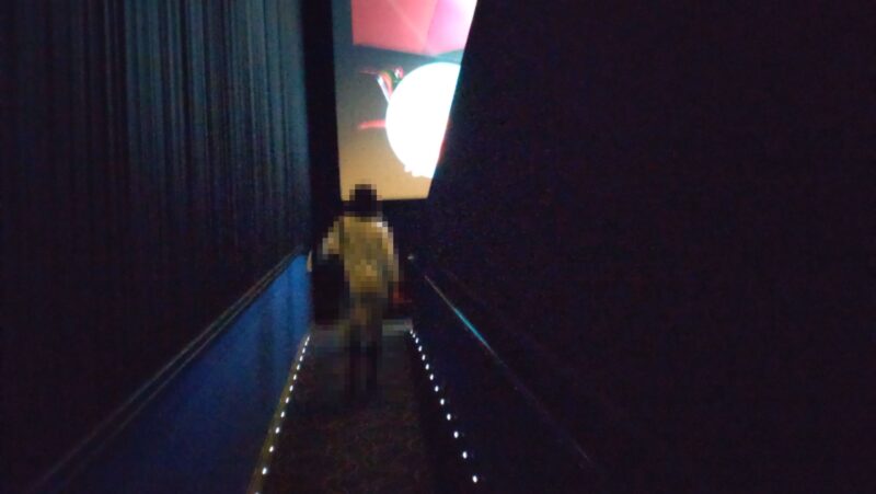 前方C列。 周りのスペースに余裕がある席がこの辺だったので買ったのだが、何かやたらとスクリーンが近く見える。 MOVIX系は前月に丸の内ピカデリーへ行ったが、600席以上の広大なシアターで(しかも空いていたので)程よい席に座って気にならなかった。 前に座るとこんなに見上げてたのかと思い出す。
