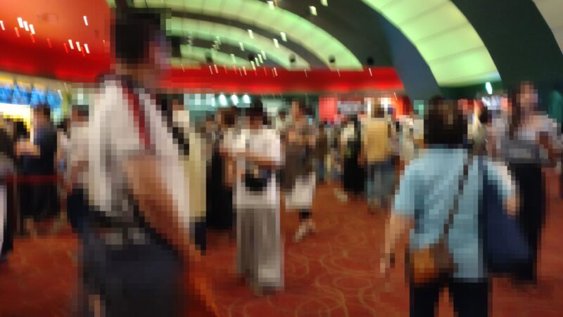 行列に並びたくないので劇場前で小休止。 同じように並ばない人も多数。 そして時間になり開場。 行列が続々と館内に入り落ち着いた頃を見計らって入館する。 今日観る映画は15分後の8:45上映。 15分しかないが何とかチケット買えるだろう。