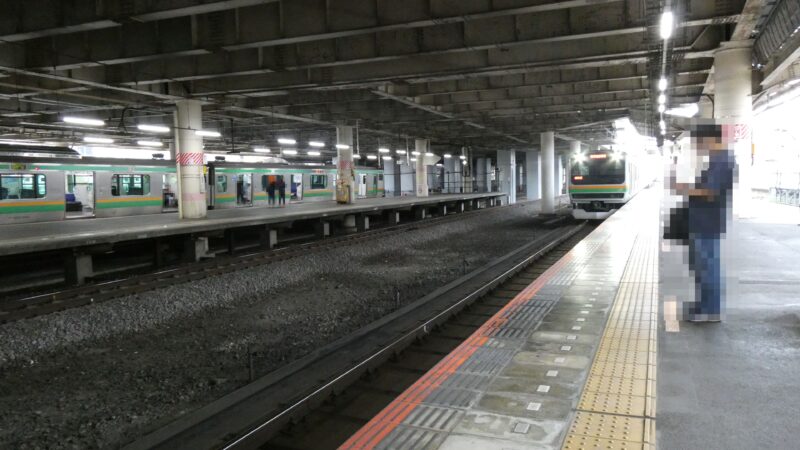このホームは東北本線(宇都宮線・高崎線)ホーム。 左隣の京浜東北線はホームドアが設置してある。 では2Fへ上がり改札へ向かう。