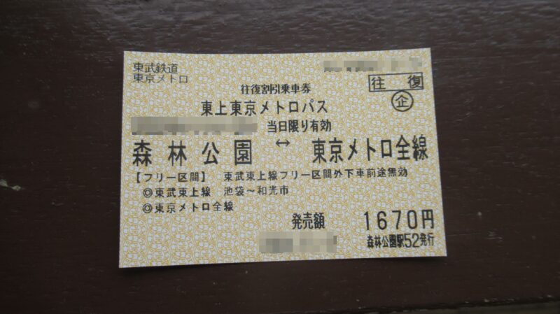 この切符はPasmoでも買えるが持っていないので磁気乗車券を購入。 ここ森林公園駅から買うと1670円。 JRののんびりホリデーSuidaパスより1000円も安い。しかもメトロ乗り放題だし。