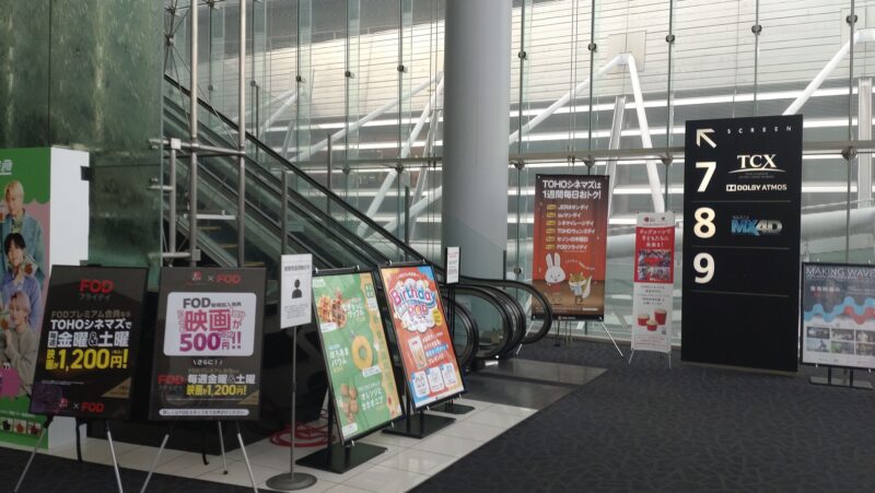 この映画館、9スクリーンで1819席。 小ぶりなシアターが多いがスクリーン7はTCXとドルビーアトモスで500席越え。 MX4Dのスクリーン8は100席となっている。 今日観たスクリーン2は342席で2番目の大きさだった。 この場所でこの規模だと混むのも理解できる感じか。