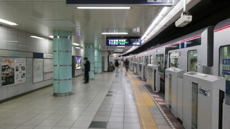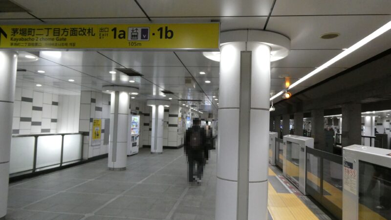 で、4分ほどで茅場町駅に到着。 今度は日比谷線の中目黒方面。