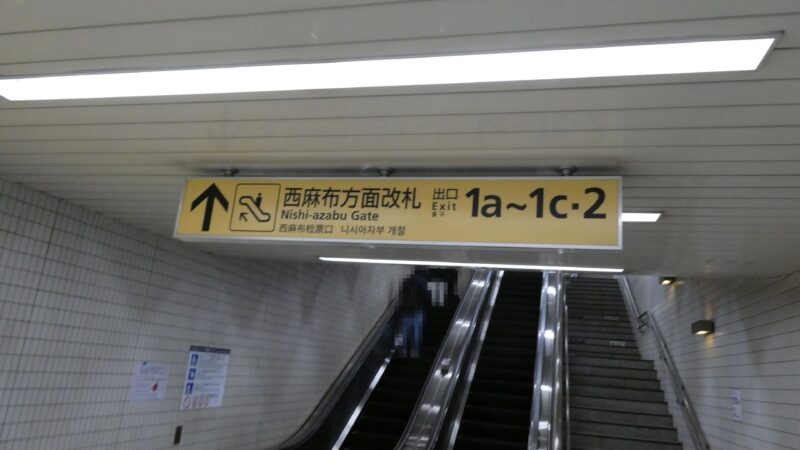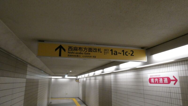 西麻布方面改札というらしい。 案内に従って狭い通路を進む。