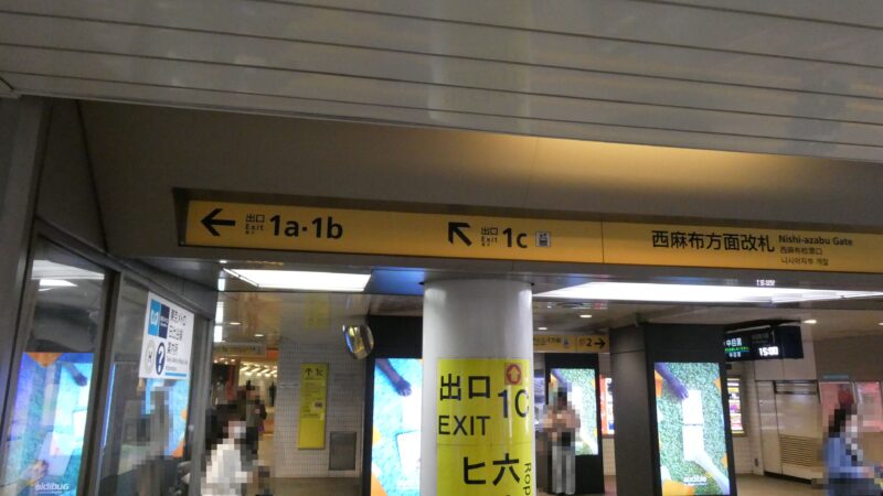 1a、1bに向かうと地上に出てしまう。 1cは六本木ヒルズ直通なので間違えないようにしないと。