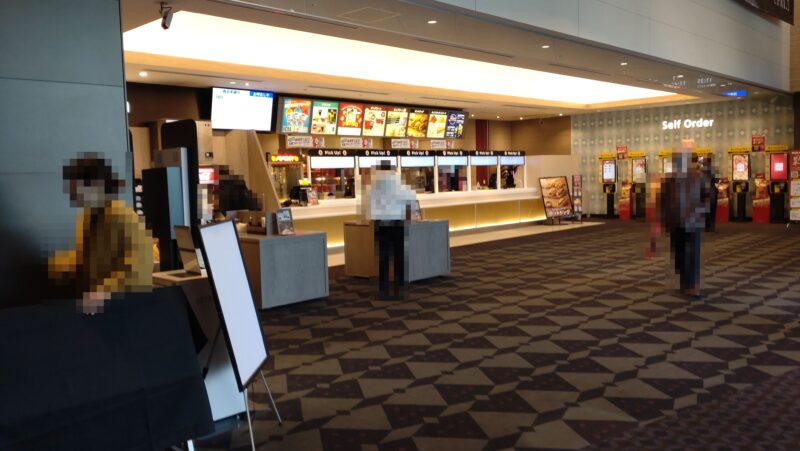 7F。 エレベーターを出た所がロビー。 平日午前中なのでお客さんも混みあっていないが、けっこうな広さ。 コンセッションはセルフオーダーで行列にもなっておらず。