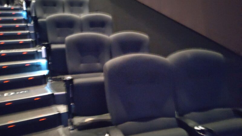 C列でこの2人掛けのシートを選択。 端の方だが大きいスクリーンで観やすい、3列目だが圧迫感もない。 さすがTOHOシネマズ。 シートもいつものTOHOシネマズ。