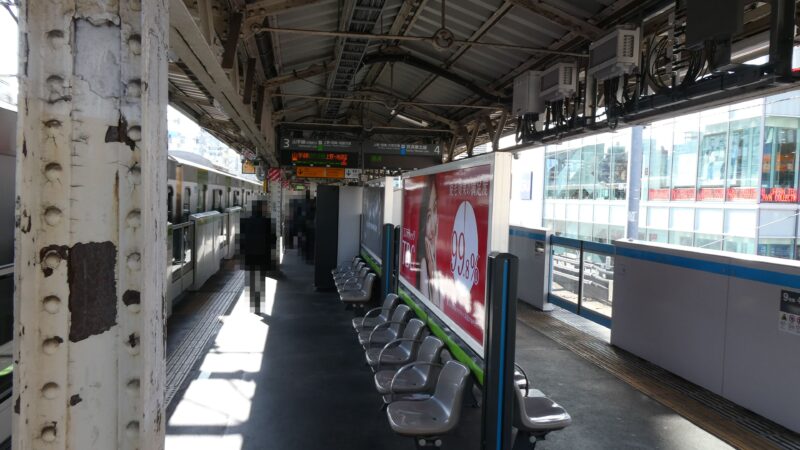駅を出た正面は広場になっており右と左に同じような道路が西に伸びている。 正解は一度、駅を右に出て左折する道路。 ちなみにこの高架脇を140mほど北上するとアメ横商店街。 散策したいところだが時間もないので映画館へ直行。