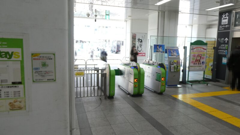 1Fへ降りると線路西側へ出る改札。 この改札はIC専用だが右に見えるエレベーターの隣にも改札があるのできっぷでも安心。