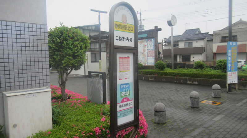 コミュニティバスなので町役場、図書館など主要な施設を廻って10分後に「神保原駅南広場」。 ここはいわゆる神保原駅の南口ロータリー。 急いでいればここから乗った方がウニクスまでは速いが運賃は一律料金なので問題なし。 ちなみに運賃200円は後払いなので降車時に払う。